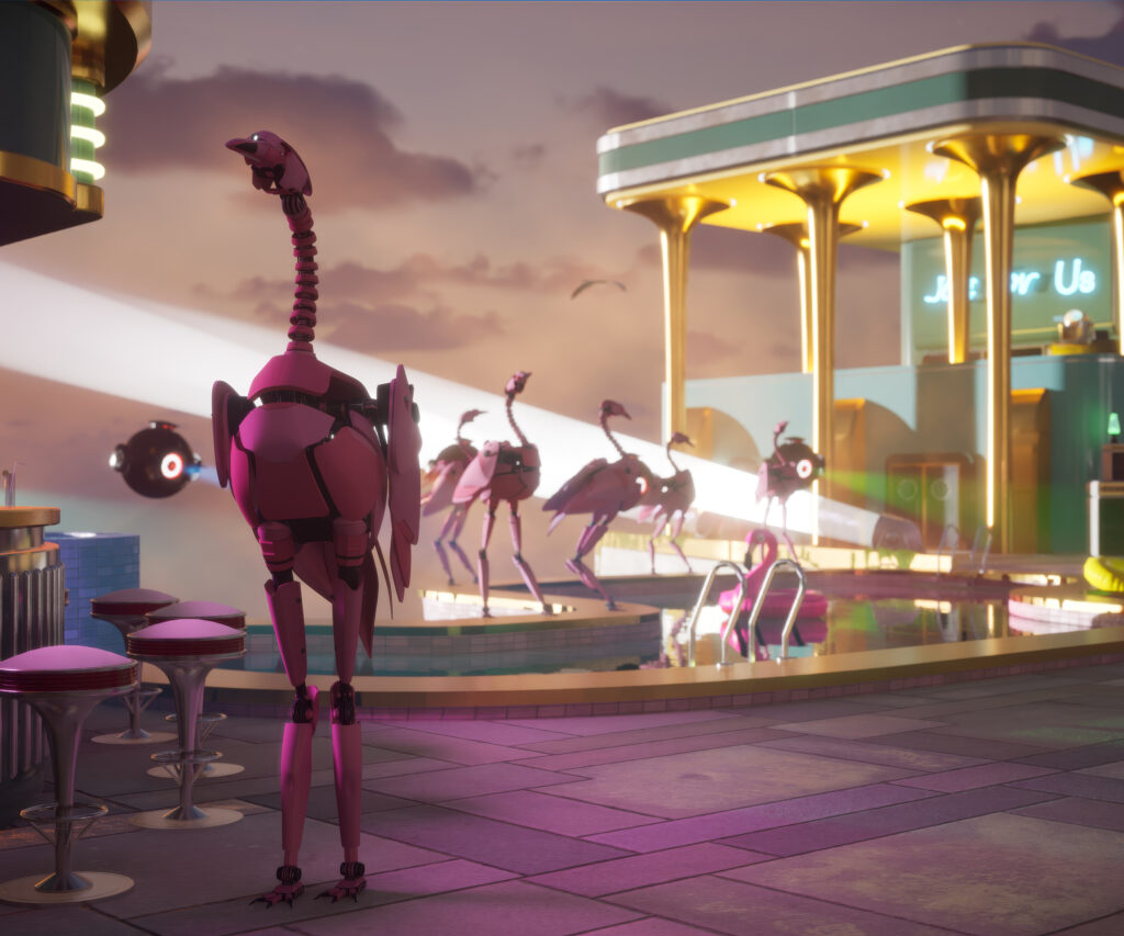 Näyttelyn toteuttamisessa on käytetty tekoälyä, 3D-animaatiota, pelimoottoreita ja teatterimaisia lavasteita. Äänimaailmasta vastaa säveltäjä Laura Naukkarinen (Lau Nau) ja tarinaa on kehitetty yhteistyössä tieteiskirjailija Emmi Itärannan kanssa.