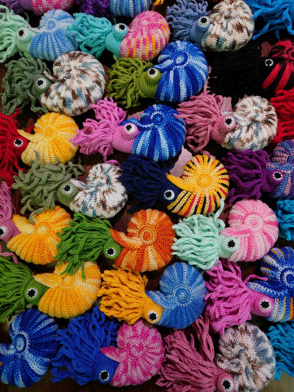 Kaikuja merestä -näyttelyssä nähdään pigmenttitussipiirroksia, virkkaustöitä sekä hopeakoruja. Virkkaustöistä esillä on Ammoniitit-installaatio sekä Korallimekko (2021), joka vaati valmistuakseen kahden vuoden työskentelyjakson.