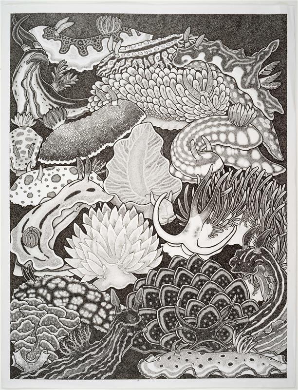 Kettukin vuoden 2025 taiteilijaksi valitun Maima Tanin näyttelyssä nähdään mielikuvitusolentoja, sieniä ja merenalaista maailmaa tarkkoina piirroksina, virkkaustöinä ja hopeakoruina.