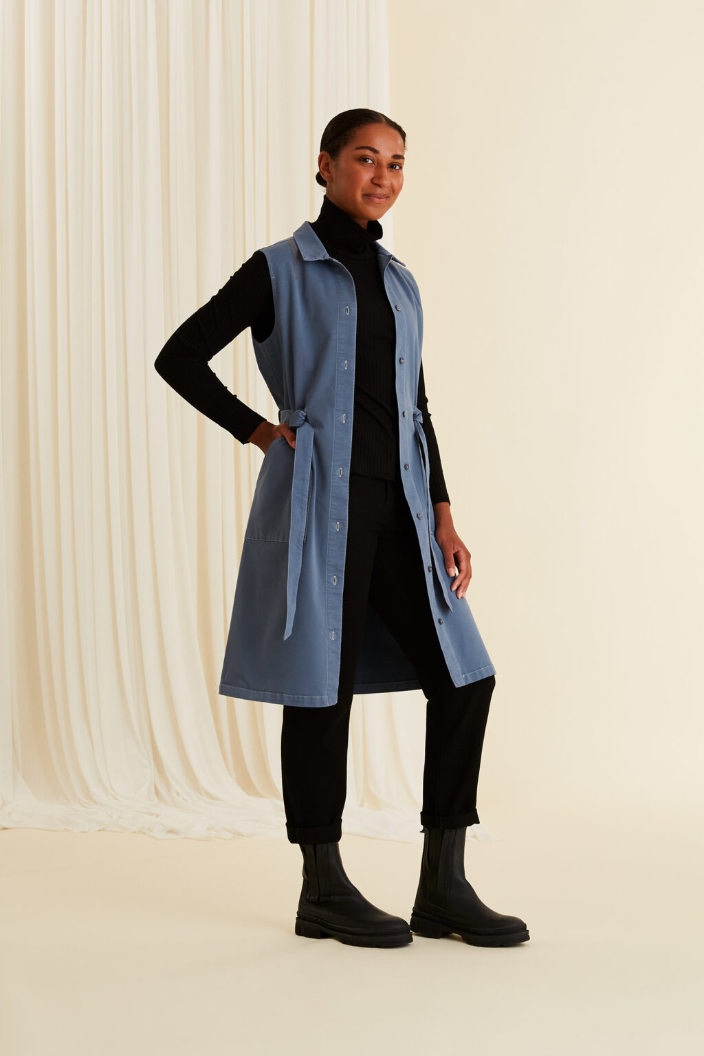 – Denim on alkuperäiseltä käyttötarkoitukseltaan työvaatekangas, joten sen valinta Malvan työvaatemateriaaliksi oli mielestäni hyvin ilmeistä. Yksityiskohtia itse vaatteisiin etsin vanhoista Mallasjuoman työntekijöistä otetuista valokuvista ja heidän työvaatteistaan, Syvänen kuvailee.